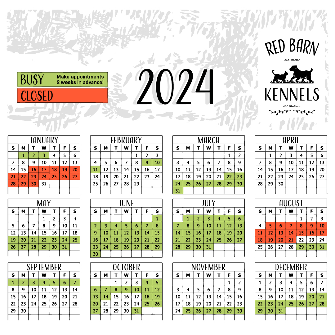 *Please be aware we are experiencing a higher volume of bookings due to Country Pet Resort closing. We will be unable to take new customers the day of appointments and holidays. If you are a new customer, we may ask you to bring your dog for a trial daycare or overnight stay in order to see how they behave, depending on the circumstance. We have been booking up to 3 weeks in advance so plan accordingly*
