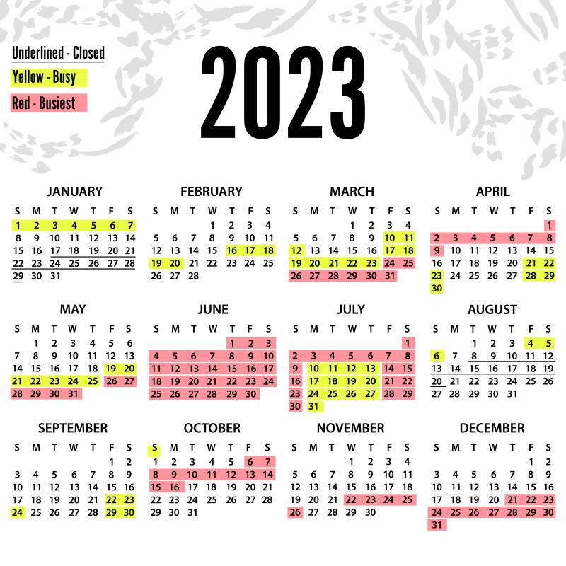 Please plan your vacation according to this schedule! Those highlighted yellow are booked a week in advance, and those highlighted red are booked 2+weeks in advance.